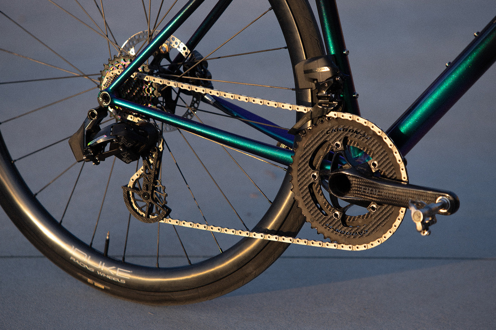 Materials : Lightweight and resistant custom 3K carbon fiber cage structure. Two 7075 aluminum pulleys (14 and 17 teeth). Fully ceramic dry bearings.